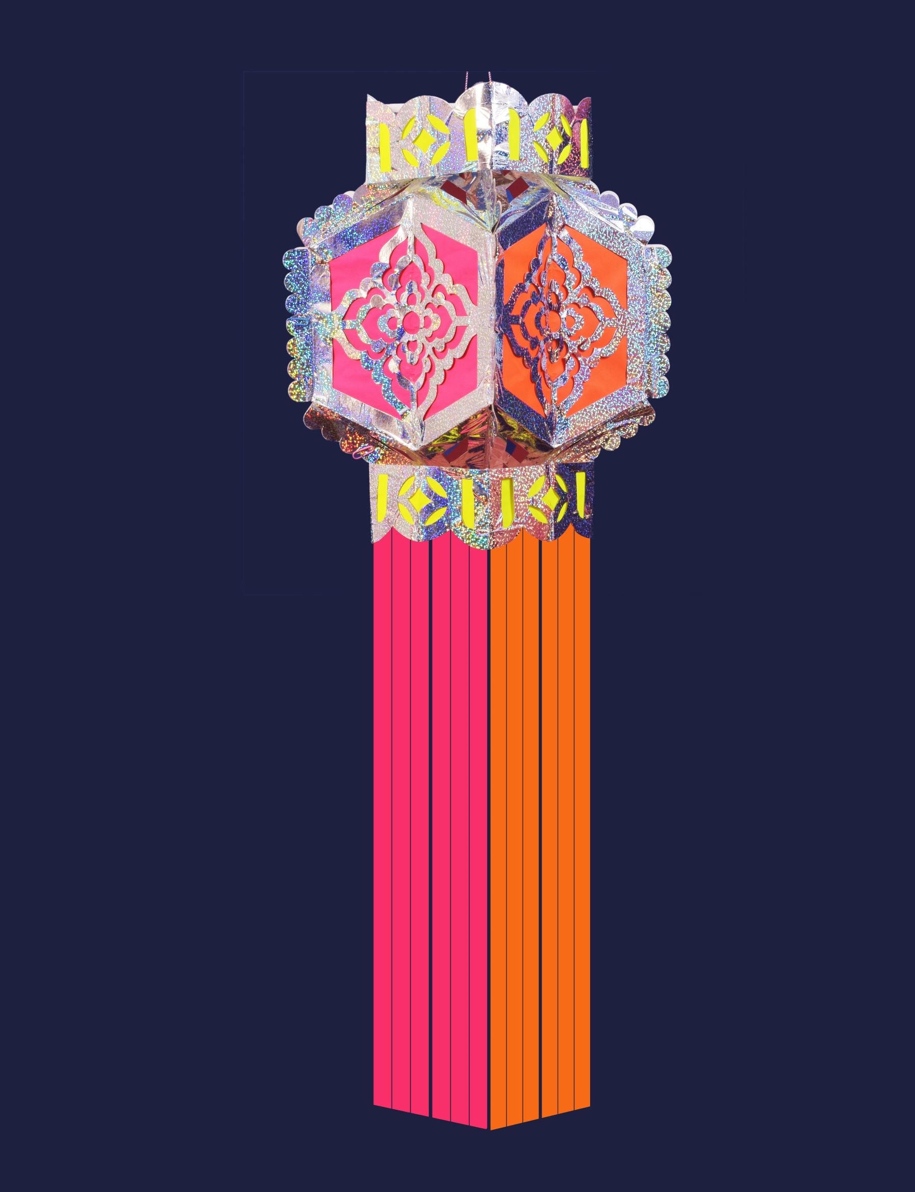 Our newest design twist of our the popular traditional Akash Kandil in hexagonal style.