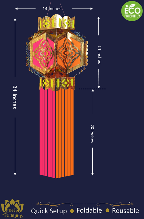 This Diwali lantern is handmade from eco friendly hard paper and sets up easily under 2 minutes.