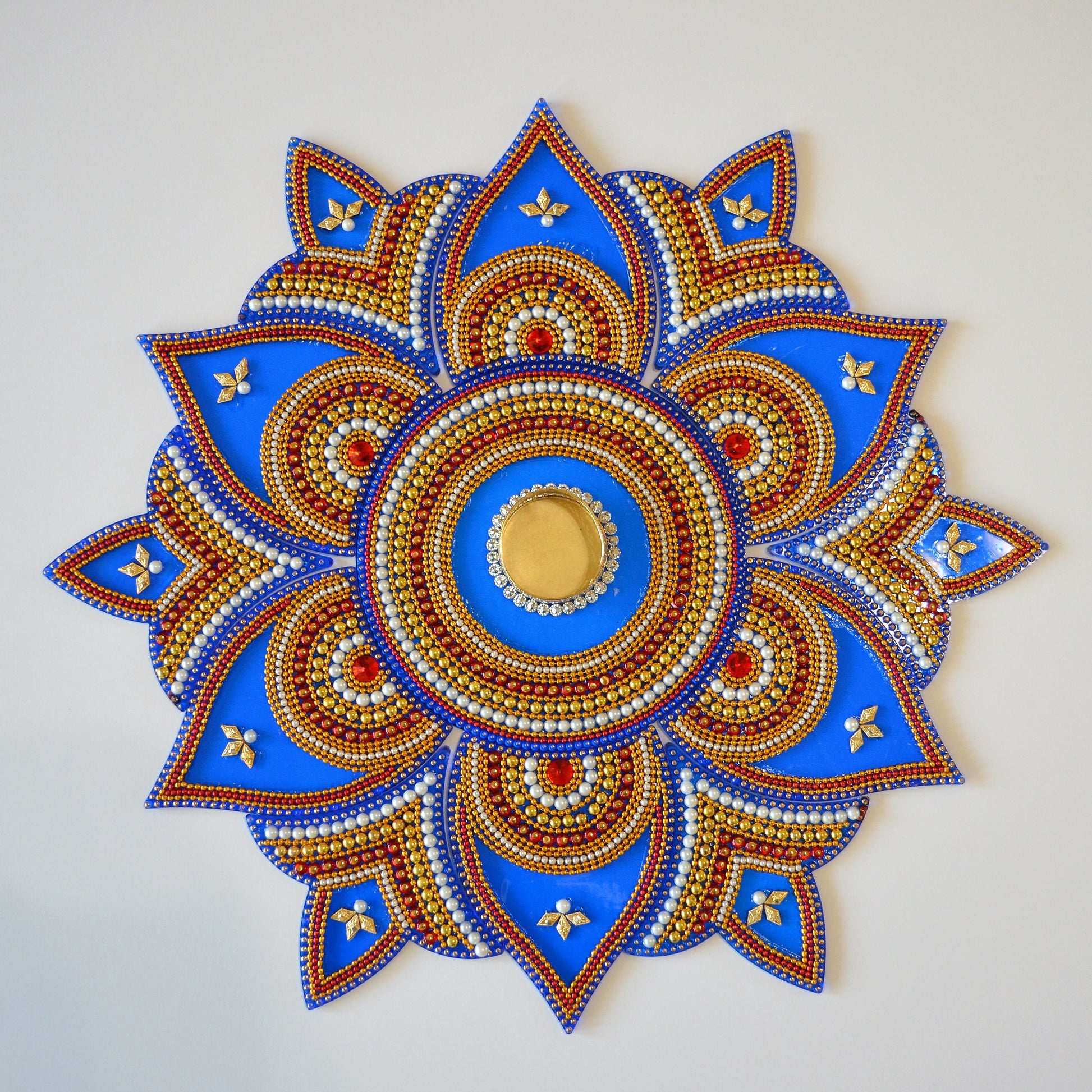 Inspired by the graceful twirling of an anarkali, the beautiful Mastani has a candle holder in the center of the design to ensure ambient light to glow up the stone work. Perfect for the entrance of your home on Diwali or any festival and as decor on the coffee or console tables. Mastani is designed in 3 color combinations.